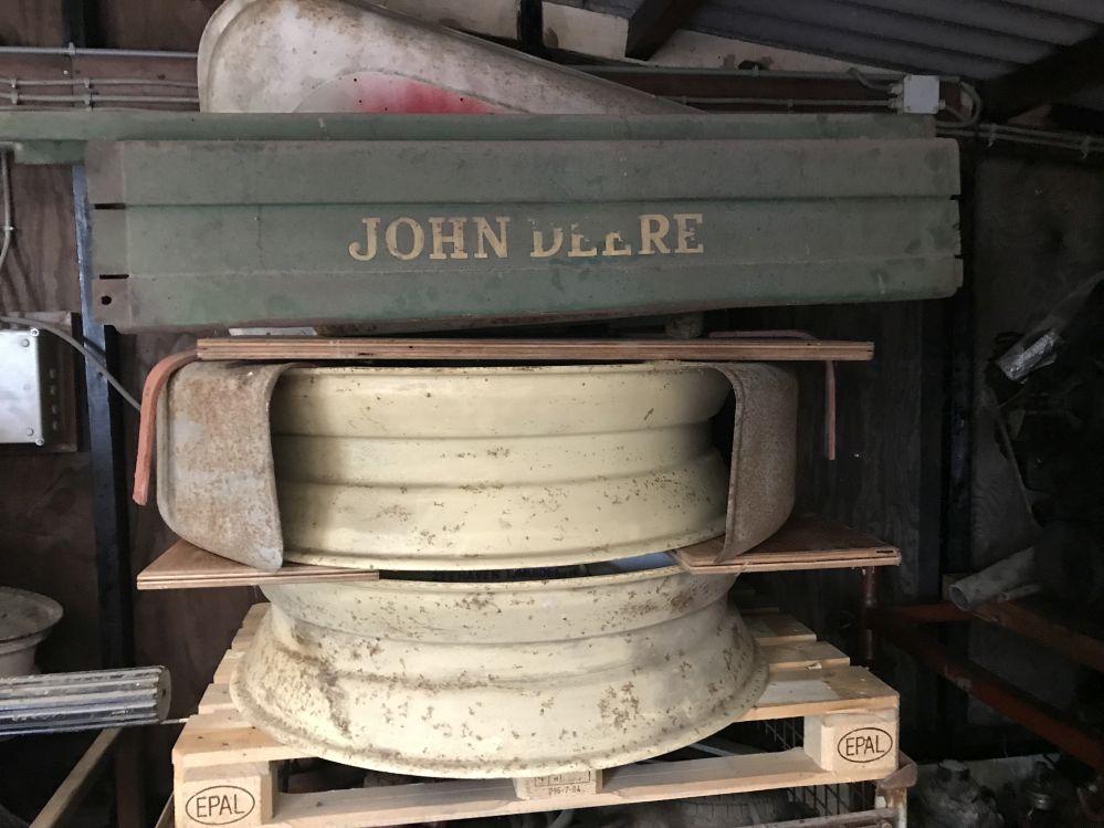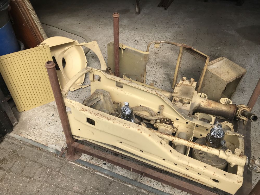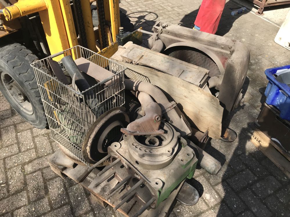 Na een deelname aan een plaatselijk evenement is het aandrijfasje van de magneet gebroken en namen wij de beslissing om hem dan maar meteen helemaal te restaureren. We hebben de trekker grotendeels gedemonteerd en gestraald en in de primer gespoten, daarna is door allerlei omstandigheden het er niet meer van gekomen om hem af te maken. Toen hij zijn oude trekkers wilde verkopen hebben wij ook deze JD-A overgenomen. Er is ook nog voor ongeveer € 500,- nieuwe onderdelen bij. De fotos die zijn bijgevoegd zijn van de trekker in zijn oorsprongkelijke staat en zoals hij er nu bij ligt. Voor meer informatie kunt u altijd even contact met ons opnemen KLIK OP KLEINE FOTO EN SCROLL DOWN, KLIK DAAR NOGMAALS OP VOOR EXTRA GROTE FOTO |